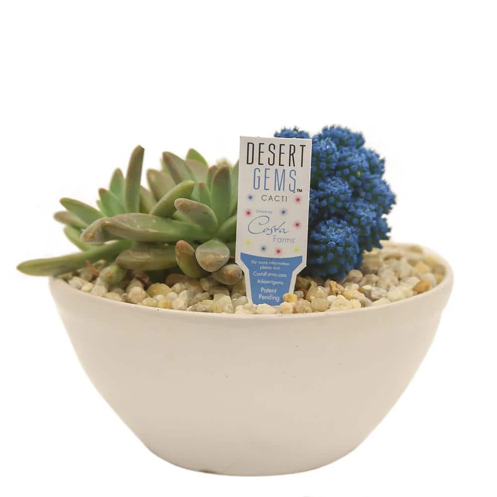 Enjoy no-fuss succulents with beautiful Desert Gems colorful cacti in this unique arrangement. Designed by experts at Costa Farms to act as a gorgeous living centerpiece or desktop decor, these plants look great together and love the same growing conditions. All this arrangement needs is a spot in bright light and occasional watering. Fabulous to personalize your desk, window sill, or tabletop, it’ll look good for years with the right care. Shipped fresh and directly from our farm in Miami, you’ll love how it makes your indoor space look.