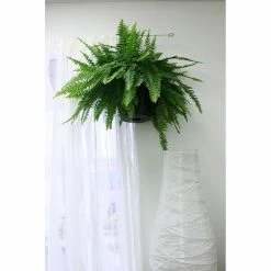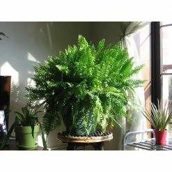 Enjoy the beauty of Boston Fern, which features solid, green foliage and is fantastic for large spaces. Grow Boston Fern in bright, indirect sunlight. Water it about once a week with approximately 2-3 cups. Ensure excess water drains. Adjust as needed for your environment. Never let Boston Fern sit in water or saturated soil. When shipped, its about 16-inches tall, measured from the bottom of the pot to the top of the plant. Boston Fern ships in a black, 10-inch grower pot. To help with water drainage, this container does have holes. Boston Fern is generally a slow grower, depending on environment and care provided. Boost growth in spring and summer with a fertilizer labeled for potted plants following the products instructions. When Boston Fern outgrows its current container, repot by gently removing it from its container and placing it in a 2-inch wider container. Fill with potting mix and water thoroughly. Hardy outdoors in USDA Zones 9-10. Exposure to the sap of this plant may cause discomfort to individuals with a sensitivity to it upon contact. Grown for ornamental purposes and not intended for human or animal consumption.