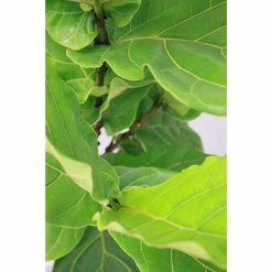 Bring a bold touch of nature to your home with a fiddle leaf Ficus plant. This eye-catching plant has large, dark green leaves that add a rich tropical look to a bedroom, living room or sunroom. Not only are fiddle leaf figs striking and hearty, they help purify the air by removing unhealthy organic compounds. Research also shows that adding plants to your home also may help you feel happier and calmer. The plant includes a seagrass basket.
