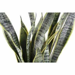 - Leaves can be dark green with lighter green or gray horizontal markings with the distinguished yellow edging