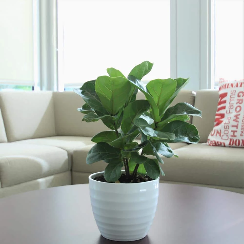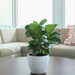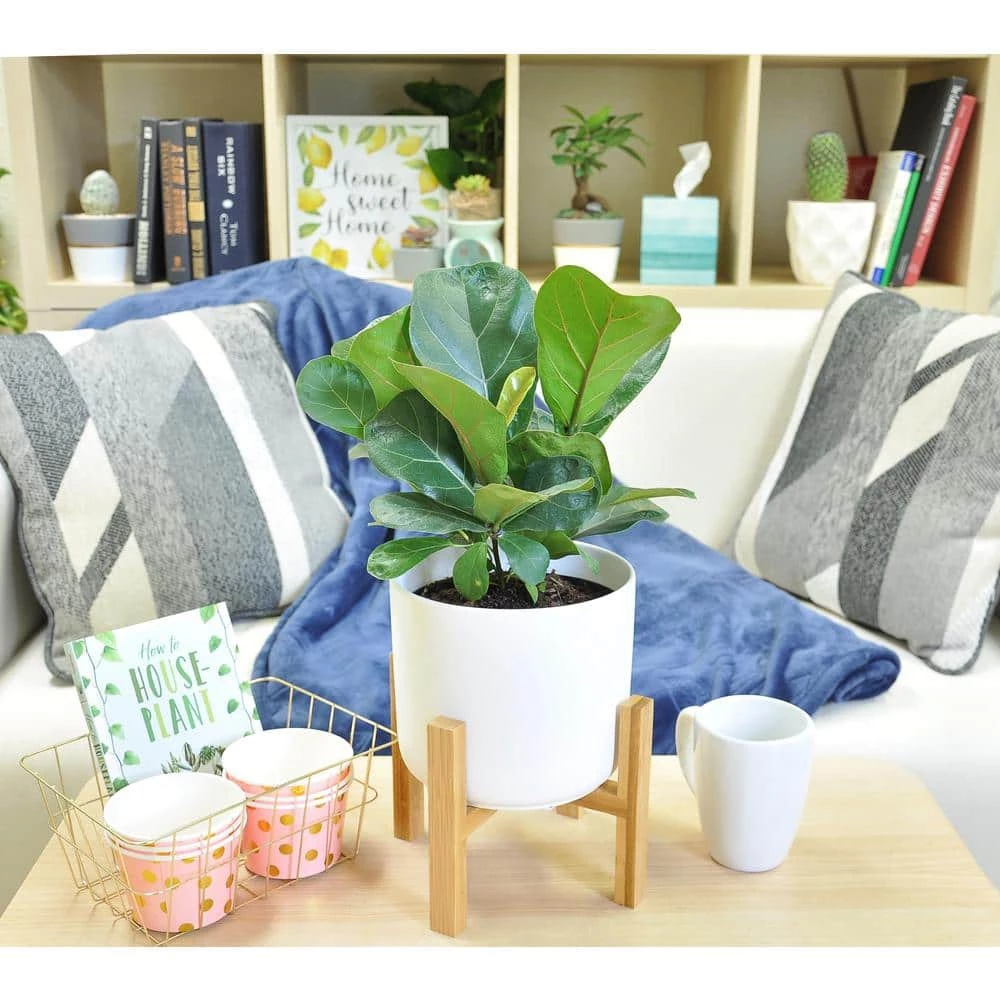 Easy to grow houseplant features rich green fronds that add instant life and beauty to any room. The Fiddle Leaf Fig features large, fiddle-shaped leaves creating an instant designer impact and adds life to a brightly lit room at home, a lightly shaded porch, or in the office. It grows best near a sunny window. FIDDLE LEAF FIG IS LIKE A LIVING SCULPTURE: Set a Fiddle Leaf Fig into a room and it will become an instant focal point. The tall, leafy shape of this plant is like a living piece of art. Fiddle Leaf Fig requires bright indirect light and likes regular watering. It needs the right spot in your home to really shine. A GREAT PLANT FOR HOMES AND OFFICES! Fiddle Leaf Fig is an ideal houseplant for any home, apartment, or office with the right light. Its lush form and green fronds make this houseplant a great gift. FIDDLE LEAF FIG ADDS EXOTIC ALLURE TO INDOOR DECOR: This houseplant is great for living rooms, dens, bedrooms, bathrooms, and kitchens.