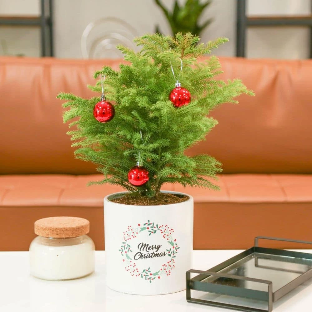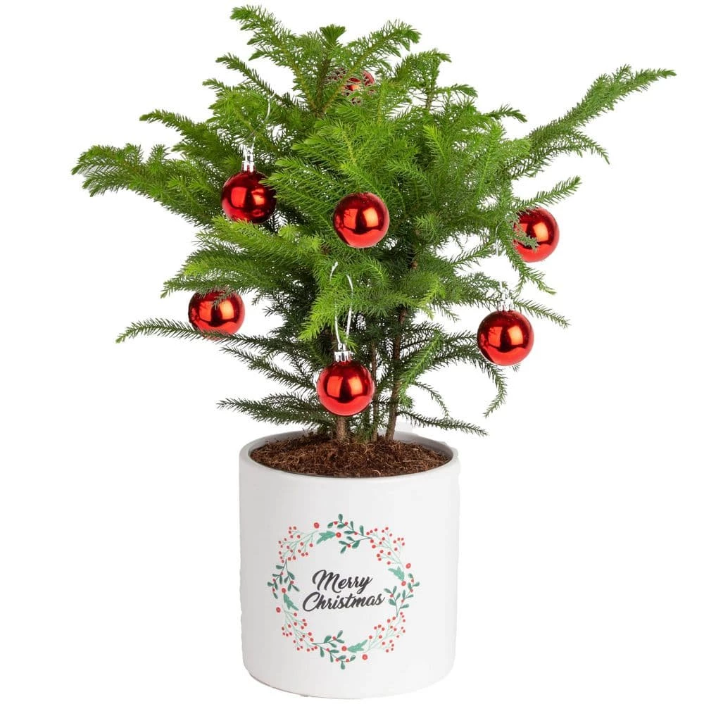 - Easy-to-grow house plant comes with ornaments on its feathery, needled branches and a topper to start your holiday decorating