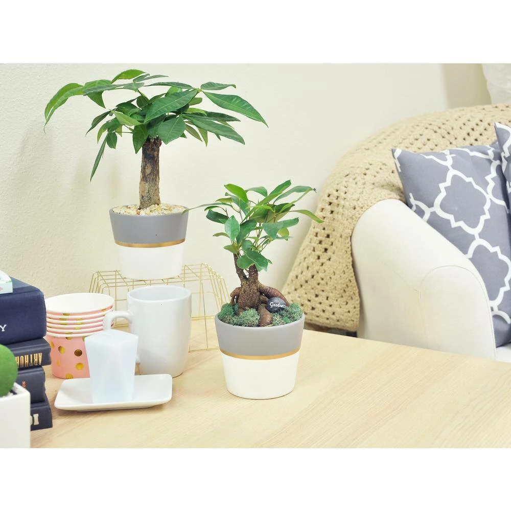 Few plants are as stylish and sophisticated as bonsai. These tiny trees are perfect dramatic decor for indoor spaces, especially desks, offices, and bedrooms. They practically radiate Zen. The most thing to know about bonsai is that it’s not a type of plant, but instead, a way of treating a plant. That’s important fact because when it comes for caring for your bonsai, you have to give your bonsai the kind of light, water, temperature, etc. that plant type needs. Bonsai is not a type of plant, it’s a way of modifying a plant’s growth. The Japanese term bonsai explains it best: bon means a low pot and sai refers to plants. So bonsai are simply plants growing in a low pot. Growing and sculpting your own bonsai can take years. But ready-made versions allow you to enjoy the beauty of bonsai right away.
