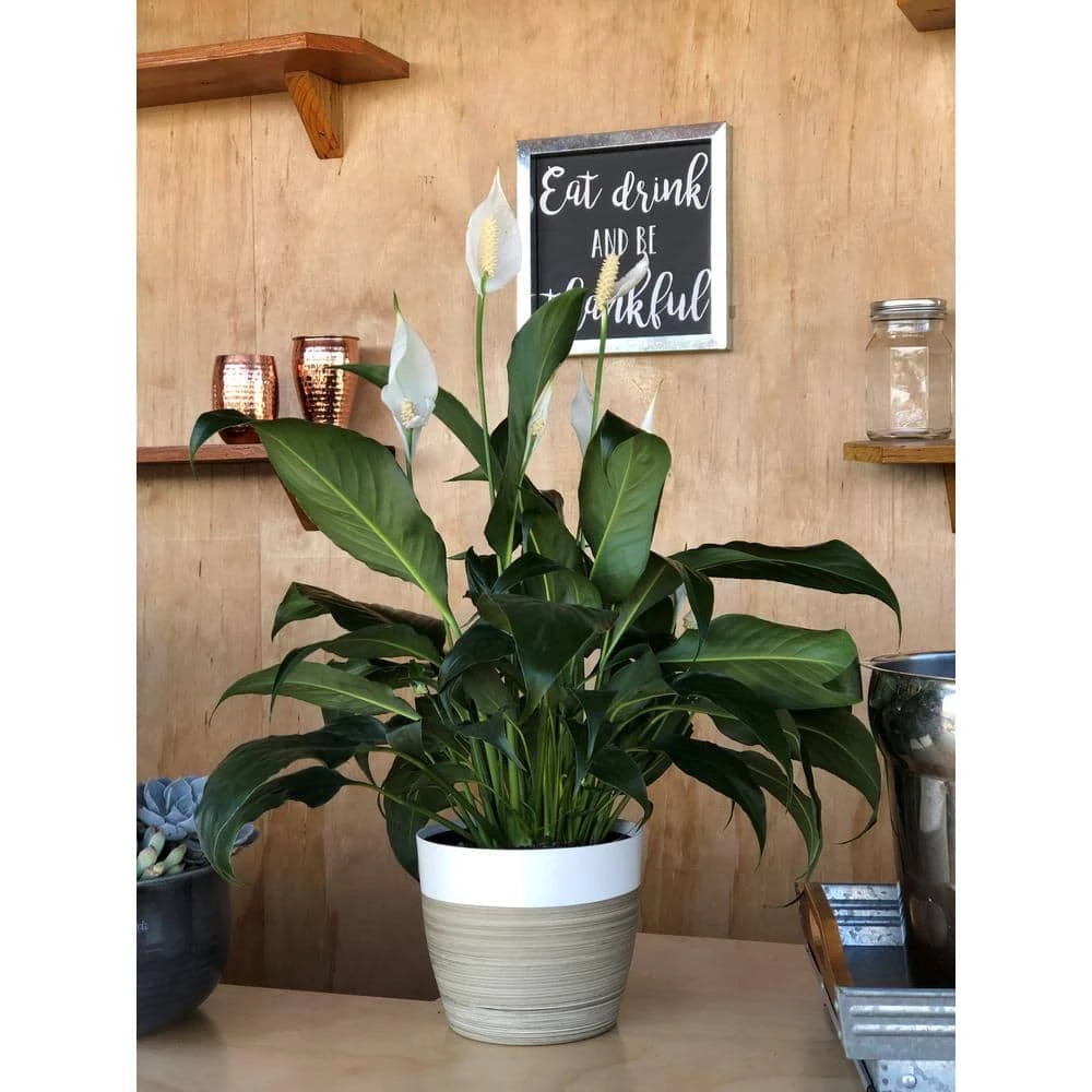 Enjoy white flowers atop dark green foliage with Spathiphyllum more commonly known as the Peace Lily. Spathiphyllum looks great with any interior decor. A houseplant classic, this is a favorite plant for homeowners looking for an easy to grow plant. The plant is native to the South American jungles so moist, humid conditions inside your home are best. Easy to grow plant with a big personality, Peace Lily is ideal houseplant for any home, apartment, or office. Peace Lily also makes a great housewarming gift. Everyone loves plants, especially ones that are so low maintenance! Because peace lily is one of the most efficient houseplants at filtering indoor pollutants from the air, it’s a great pick for bedrooms.