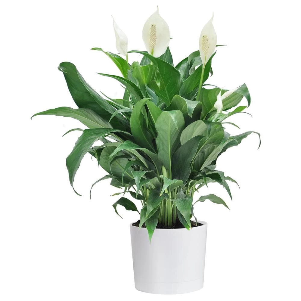 Enjoy white flowers atop dark green foliage with Spathiphyllum more commonly known as the Peace Lily. Spathiphyllum looks great with any interior decor. A houseplant classic, this is a favorite plant for homeowners looking for an easy to grow plant. The plant is native to the South American jungles so moist, humid conditions inside your home are best. Easy to grow plant with a big personality, Peace Lily is ideal houseplant for any home, apartment, or office. Peace Lily also makes a great housewarming gift. Everyone loves plants, especially ones that are so low maintenance! Because peace lily is one of the most efficient houseplants at filtering indoor pollutants from the air, it’s a great pick for bedrooms.