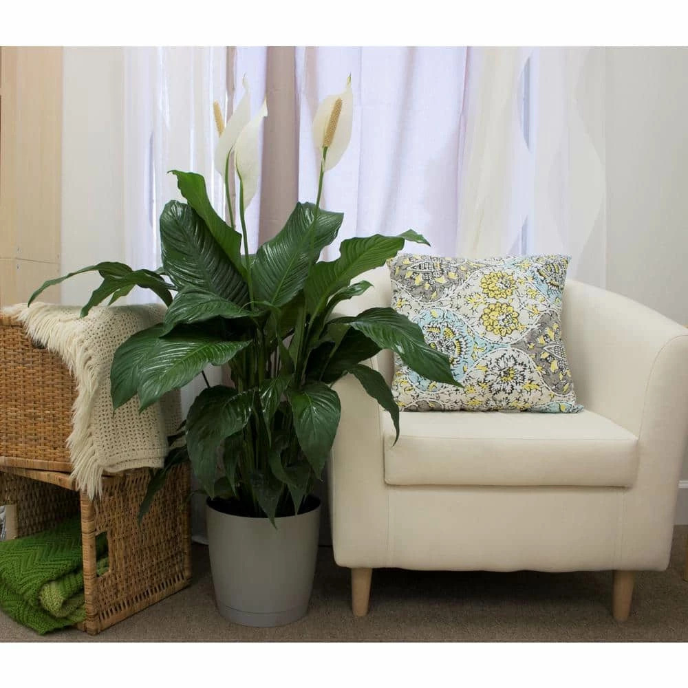 Enjoy white flowers atop dark green foliage with Spathiphyllum more commonly known as the Peace Lily. Spathiphyllum looks great with any interior decor. A houseplant classic, this is a favorite plant for homeowners looking for an easy to grow plant. The plant is native to the South American jungles so moist, humid conditions inside your home are best. Easy to grow plant with a big personality, Peace Lily is ideal houseplant for any home, apartment, or office. Peace Lily also makes a great housewarming gift. Everyone loves plants, especially ones that are so low maintenance! Because peace lily is one of the most efficient houseplants at filtering indoor pollutants from the air, it’s a great pick for bedrooms.