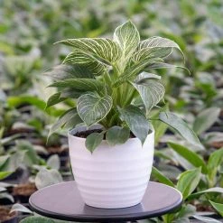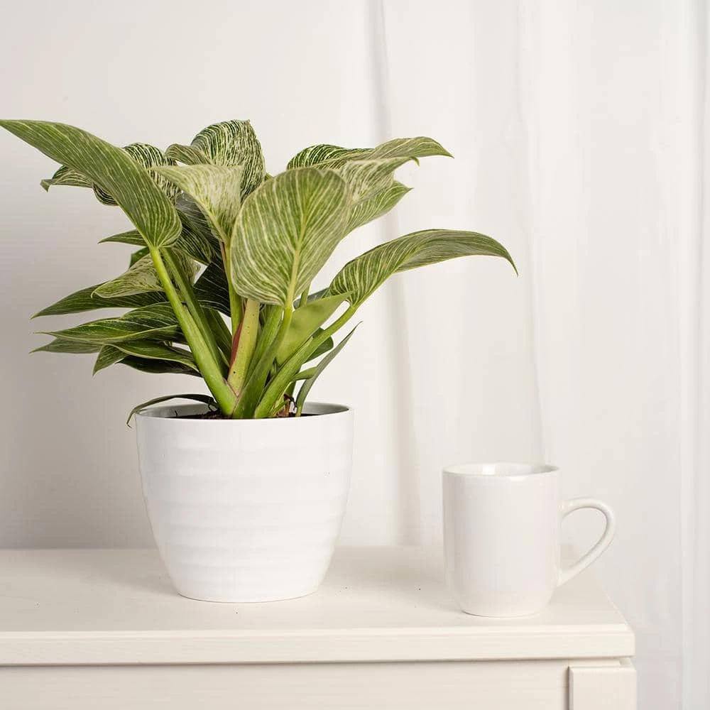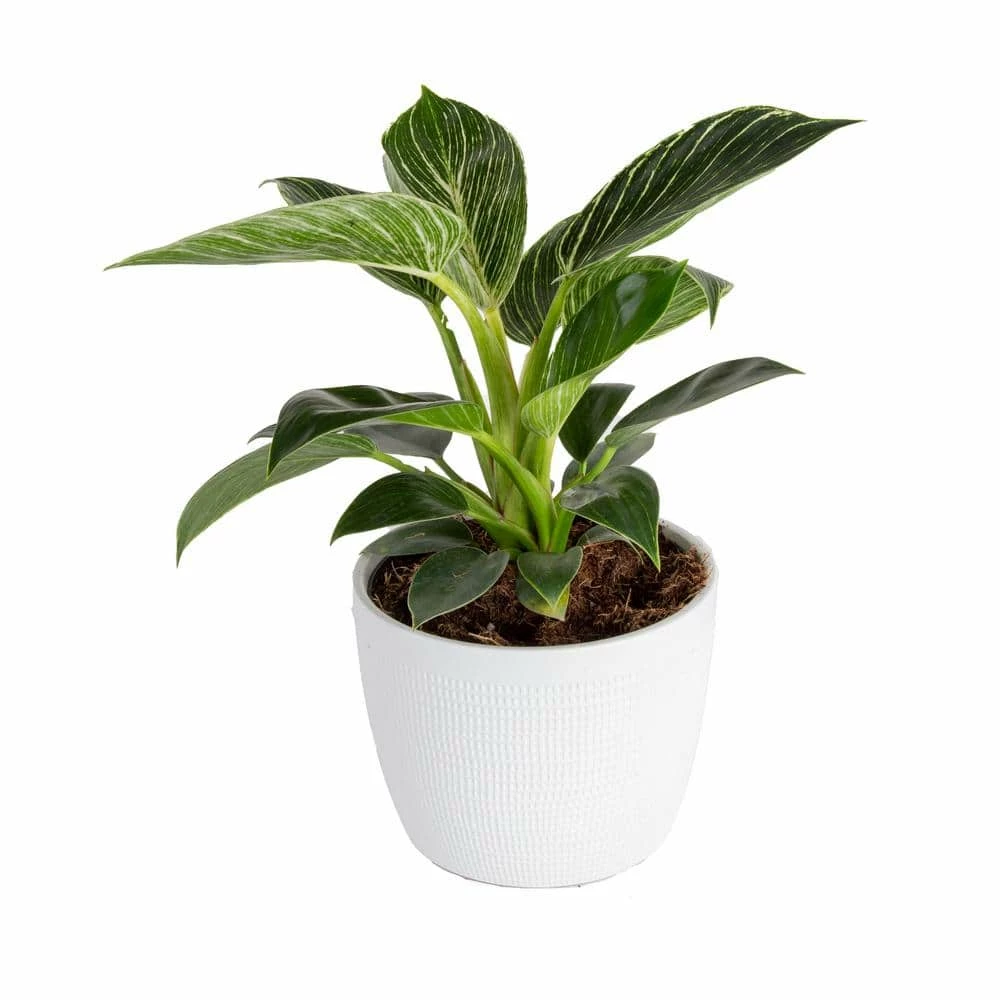 The Trending Tropicals Collection: Elevate your home decor with exceptional new varieties representing some of the hottest houseplant varieties on social media. This plant is great for small spaces and tabletops. It does well in offices, kitchens, dining rooms, living rooms, bedrooms, and outside on a patio. Birkin Philodendron is a relatively new houseplant. It has large, dark green leaves boldly streaked in creamy white. It’s a slow-growing, trendy variety perfect for any well-lit home or office. While its young, it’s a great addition to a tabletop or desk. It can mature that 3 ft. tall and wide. Place Philodendron Birkin in a spot that receives bright light (4 or more hours of sunlight. This plant prefers indirect sunlight. Direct sunlight may burn the plant. Water when the top 2 inches of the soil are dry (about once every 7 to 10 days) and be sure all excess water drains away. If the container does not have holes, use approximately 1 cup (for 6in diameter container) of water, adjust as needed for your environment. Do not let the plant sit in water or overly soggy soil.