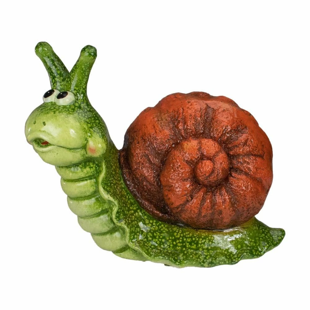 Add this adorable guy to your outdoor garden decor. He is ready to join in on your outdoor festivities and will bring a smile to your face. He is an ideal enhancement to your deck garden or even to your interior decor. Features: Outdoor garden snail statue. 2 t1d green segmented body. The back of the body is spotted green. He lives in a brown spiral shell. Adorable large white and black eyes. Durably made of polyst1 for years of enjoyment. For indoor or outdoor use. Dimensions: 11 in. H x 13.5 in. W x 7 in. D. Material(s): polyst1/resin mix.